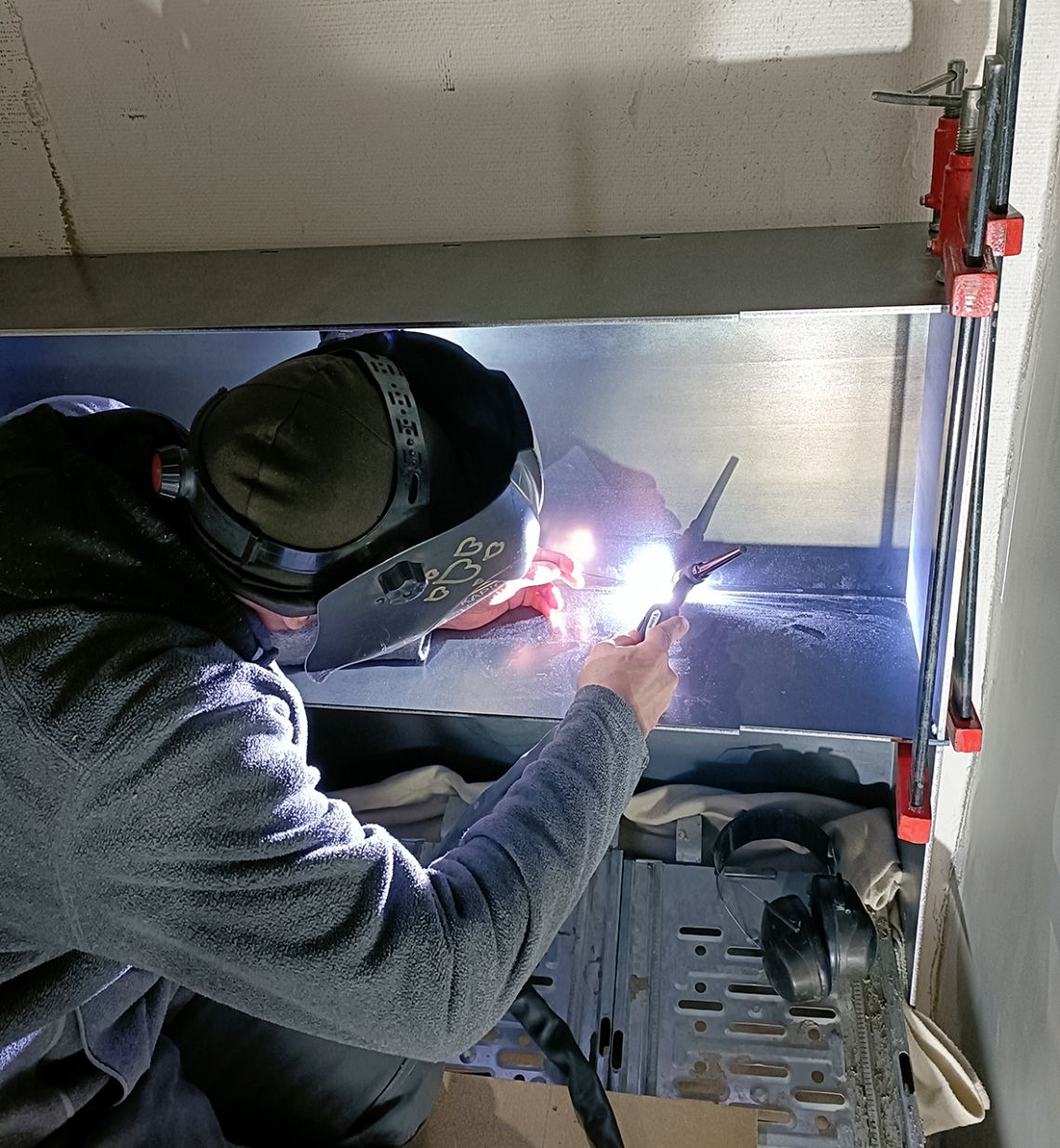 Les 190 pièces numérotées et référencées de ce Meccano géant en acier brut de laminage à chaud de 6 mm d’épaisseur (poids total 2'700 kg) sont méthodiquement emboitées puis assemblées les unes aux autres par des points de soudure judicieusement placés pour ne pas être vus.